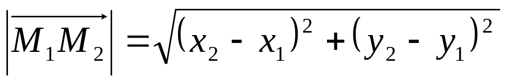 Расстояние между двумя точками плоскости равно квадратному корню из суммы квадратов разностей одноименных координат.