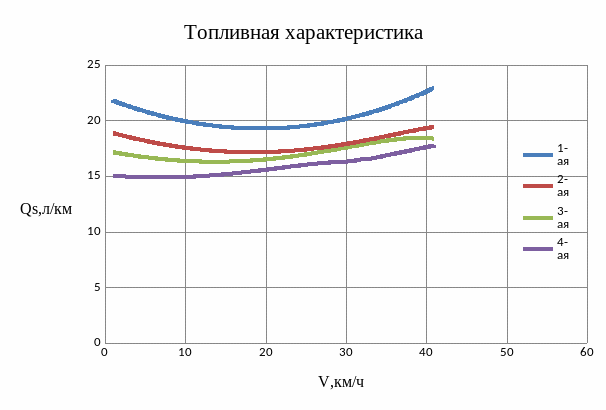 Таким образом, составим таблицы и построим график топливной характеристики автомобиля .