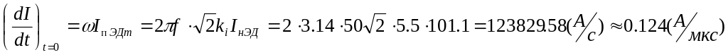 3) Проверяем выбранный тиристор коммутатора по его динамическим характеристикам в соответствии с условием не превышения скорости нарастания тока до уровня допустимого значения