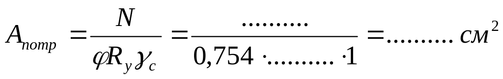 3. За формулою (7) визначаємо необхідну площу перерізу