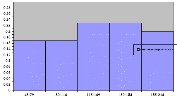 Используя данные таблицы №2,строим гистограмму, полигон распределения и опытную кривую накопленной вероятности.