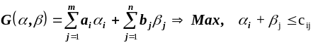 У тому випадку, коли поставки з Аі в Вj не можуть бути здійснені, відповідний тариф на перевезення сij =M, де M — дуже велике додатнє число.