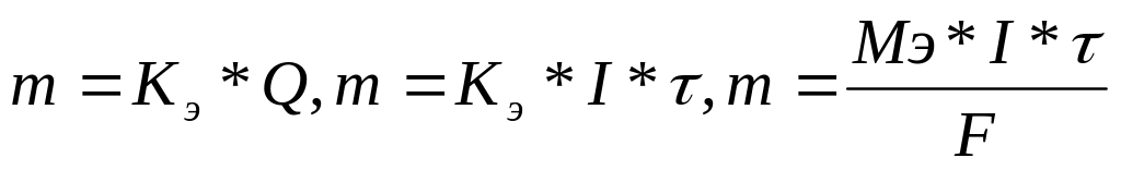 секунды, F = 96500, I - амперы, Мэ - г/моль.