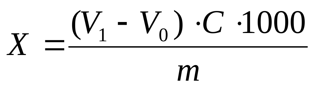 где Vo - объем раствора Na2S2O3, использованный при контрольном измерении, мл; V1 - объем раствора Na2S2O3, использованный при измерении, мл; С - концентрация использованного раствора Na2S2O3, моль/л; m - масса испытуемой пробы, г; 1000 - коэффициент, учитывающий пересчет результата измерения в ммоль на кг.