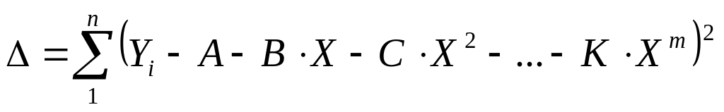 Y = А + В∙Х + С∙Х2 + ... + К∙Хm.