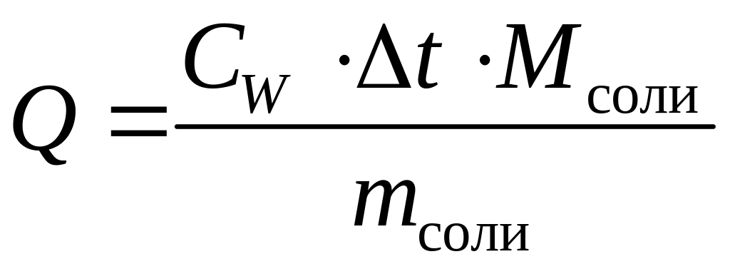 3. Тепловой эффект растворения 1 моль соли рассчитать по формуле