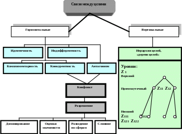 (система целей). В соответствии с этим возникает проблема их взаимодействия на одном уровне (горизонтальные связи) и по иерархии (вертикальные) (см. рис.5.3).