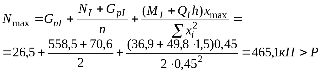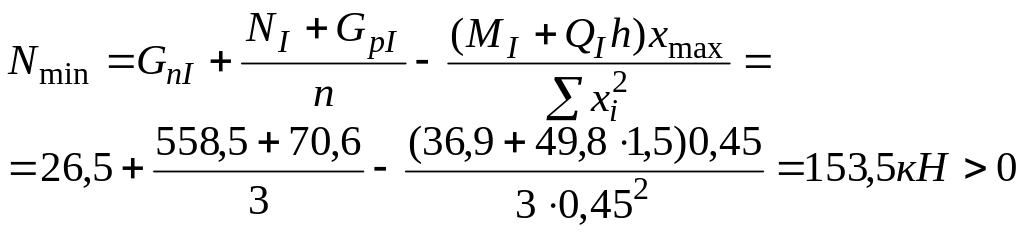 де GnI=0,3∙0,3∙10,7∙25∙1,1=26,5кН; GpI=1,4∙1,4∙1,5∙20∙1,12=70,6кН/м – вага ростверку і ґрунту на його обрізах.