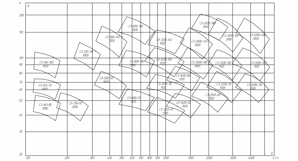 Рис. 1 приложения 20. Поле характеристик сетевых насосов.