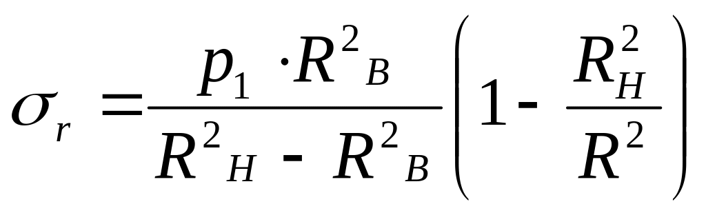 Напряжения в цилиндрической зоне, достаточно удаленной от дна и опорного фланца можно рассчитать по формуле Ляме: