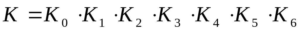 Коэффициент К рассчитывается применительно к конкретным условиям обработки по формуле: