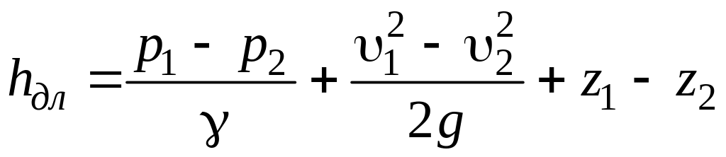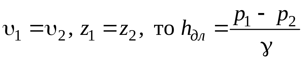 Отсюда следует, что потери напора можно определить по показаниям пьезометров, установленных в рассматриваемых сечениях.