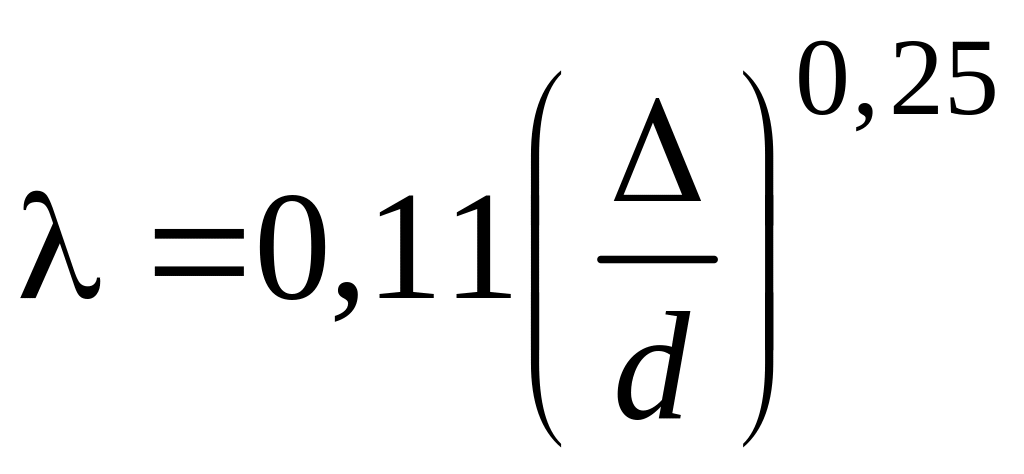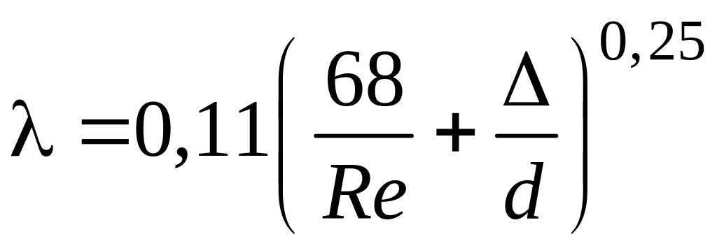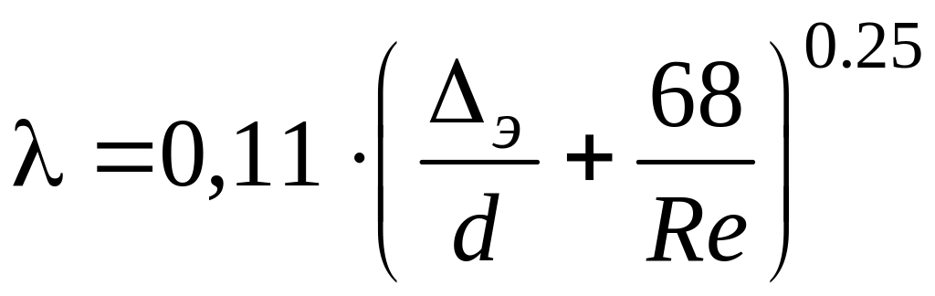 Для труб промышленного изготовления с естественной шероховатостью для любой области сопротивления при турбулентном режиме движения А.Д. Альтшуль предложил формулу: