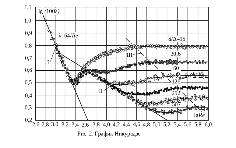 Графически эти зависимости отражены в графиках Никурадзе (рис. 2).