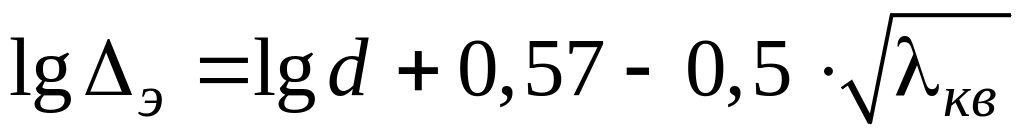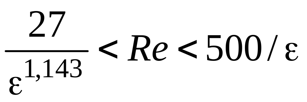 Под эквивалентной шероховатостью понимают высоту выступов равнозернистой шероховатости из однородного песка, при которой в квадратичной области сопротивления получается такое же значение , что и в рассматриваемой трубе. Определяют эквивалентную равнозернистую шероховатость трубы следующим образом. Опытным путем определяют при различных Re и строят график = f (Re), который сравнивают с графиками Никурадзе. Исследуемой трубе приписывают относительную шероховатость, равную относительной шероховатости той трубы в опытах Никурадзе, для которой в квадратичной области график совпадает с графиком исследуемой.