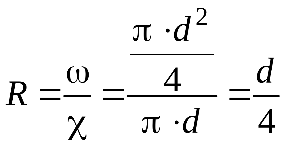 то есть гидравлический радиус равен четверти диаметра, или половине геометрического радиуса трубы r0.