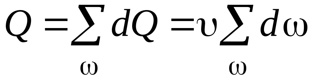 Расход потока в данном сечении равен произведению площади живого сечения потока на среднюю скорость в этом сечении υ.