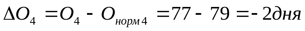 2.определим отклонения фактической обеспеченности товарными запасами (в днях) от норматива по бизнес-плану в каждом квартале: