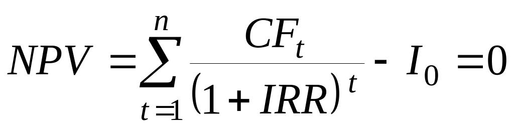 Под внутренней нормой доходности IRR понимают процентную ставку, при которой чистая современная стоимость инвестиционного проекта равна нулю. Внутренняя норма доходности определяется решением уравнения
