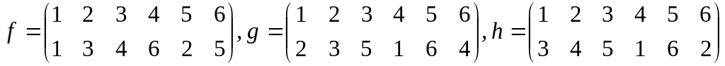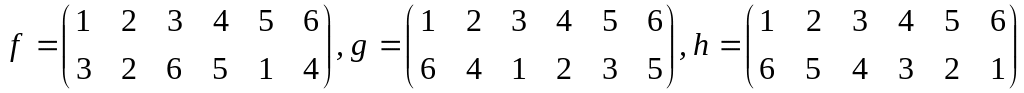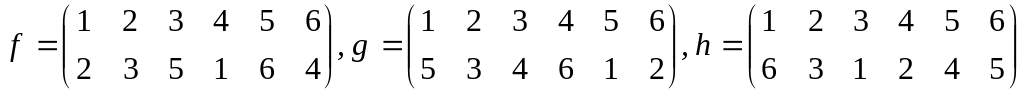 Для данных перестановок f,g,hS6 решить уравнение fxg=h, xS6. Сделать проверку. Найти порядка всех перестановок f,g,h,х.