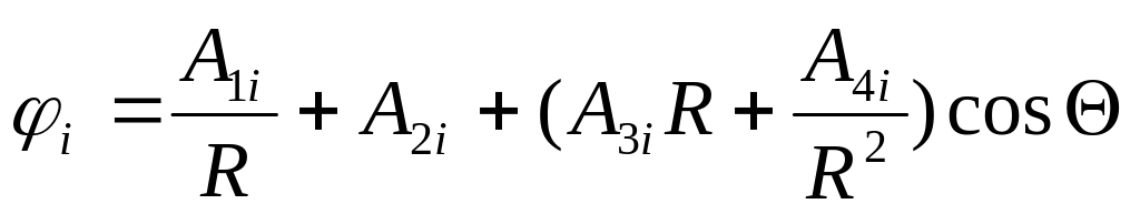 Полное решение подходит и для данной задачи. Таким образом потенциал внутренней области запишем: