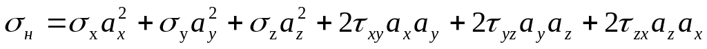 Нормальное напряжение в наклонной площадке σн определится как сумма проекций компонент Sх, Sy, Sz на нормаль к площадке: