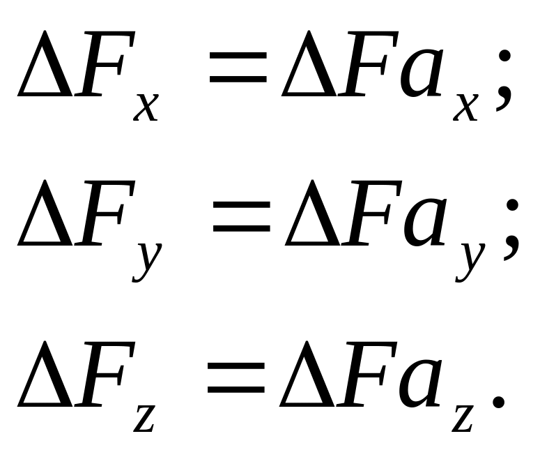 Тетраэдр должен находиться в равновесии. Пишем условия равновесия, проецируя все действующие по его граням силы на оси координат: