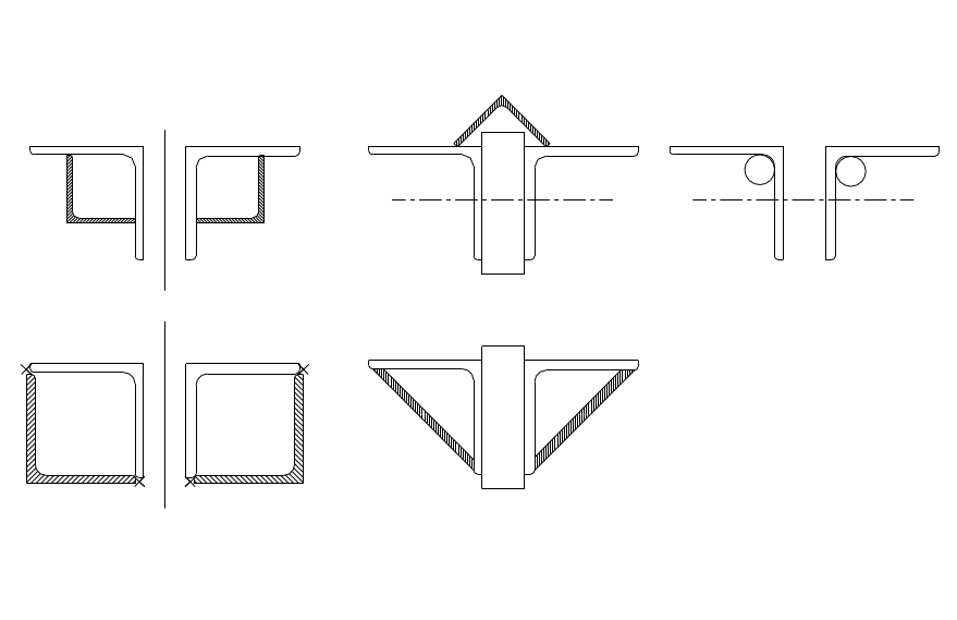 Усиление сварных соединений. При недостаточной прочности сварных соединений их усиливают увеличением длины либо высоты. Для элементов из уголков новые швы следует накладывать, начиная со стороны обушка от края фасонки в направлении существующих швов. Сварку последующего шва производят только после охлаждения предыдущего до 100 градусов. При усилении швов напряжения в усиливаемом элементе не должны превышать 0,8 Ry стали.