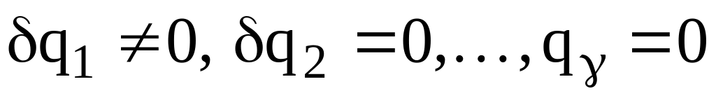 Для вычисления обобщенных сил можно использовать формулу (1.17), определив обобщенные силы как коэффициенты при вариациях обобщенных координат в выражении суммы элементарных работ всех сил на виртуальных перемещениях. Учитывая, что вариации обобщенных координат независимы и могут принимать произвольные значения, дадим СМТ такое виртуальное перемещение, при котором вариации всех обобщенных координат, кроме одной, будут равны нулю, например,