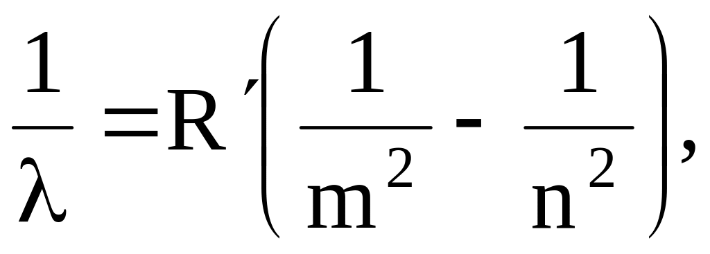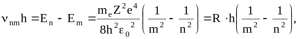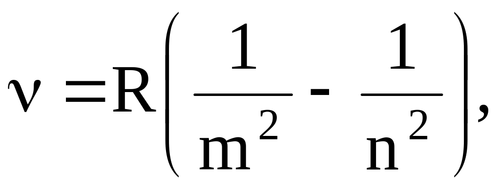где R- постоянная Ридберга. Разделив на постоянную Планка h, получаем обобщенную формулу Бальмера для частоты излучения при переходе электрона из состояния с главным квантовым числом n в состояние с m.