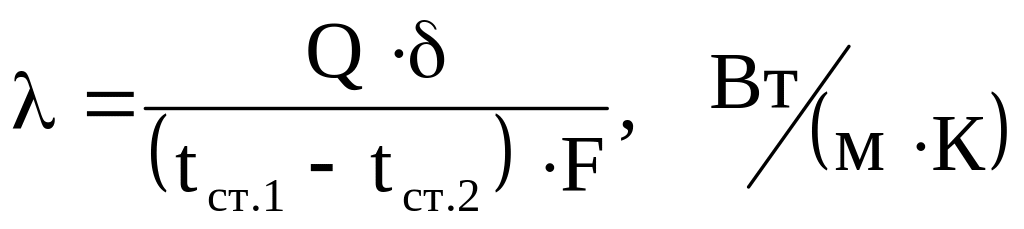 Знаючи поверхню стінки F, її товщину δ, а також вимірюючи що проходить через стінку тепловий потік Q, і температури поверхонь tст.1 і tст.2 можна визначити середнє значення коефіцієнта теплопровідності