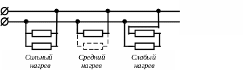 – для слабого нагрева секции включают последовательно (R=2R0).