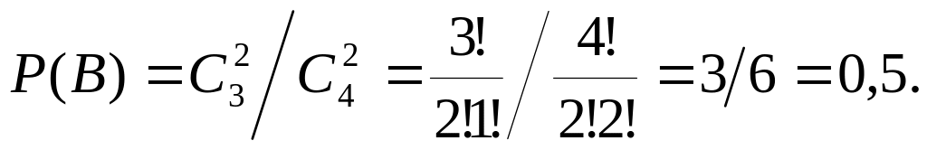 Вместе с этим исходы, показанные в таблице, можно толковать как размещения или как сочетания из 4 элементов по 2 т.е.
