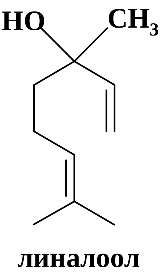 Линалоол; бесцветная жидкость с запахом ландыша, не растворяется в воде, обладает бактерицидными свойствами.