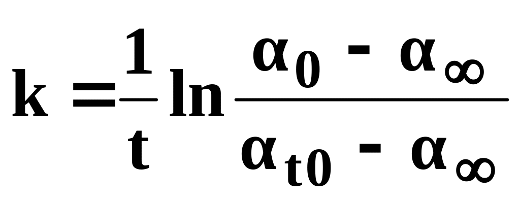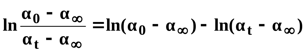 Побудувати графік залежності ln(αt – α) від часу і продовжити його до перетину з віссю ординат (точка А).