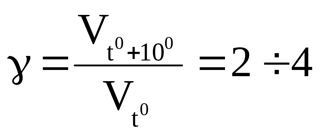 Для біохімічних реакцій = 1,6—3. Більшість ферментів виявляє каталітичну активність в інтервалі температур 10 - 60°С.