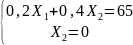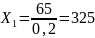 0,2X1 + 0,4X2 = 65; 0,2*1 + 0,4X2 = 65; 0,4X2 = 64,8; X2 = 162