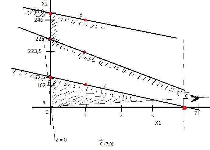 Z3 = 1,4X1 + 1,6X2 = 395