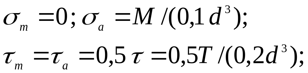 В этих формулах а и а – амплитуды переменных составляющих циклов напряжений, а m и m постоянные составляющие. Принимаем циклы напряжений симметричный для изгиба и от нулевой для кручения. Согласно этому условию: