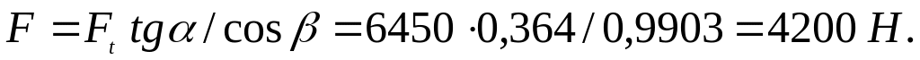 Вычисляем силы в зацеплении по формулам: