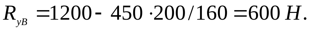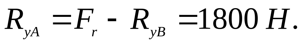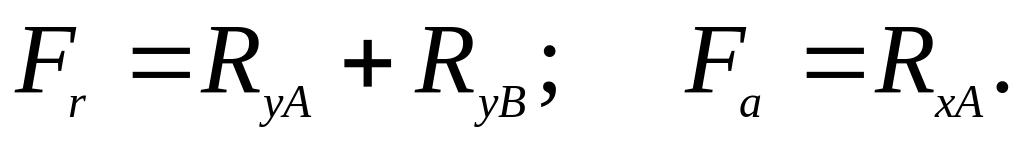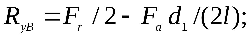 4. Определяем реакции в опорах и строим эпюры изгибающих и крутящих моментов (см. рис. 4,в,д,е). Рассмотрим реакции от сил Fr и Fa, действующих в вертикальной плоскости. Сумма проекций имеет вид:
