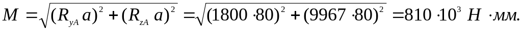 Просчитываем два предполагаемых опасных сечения (см. рис. 4,а): сечение - под шестерней, ослабленное шпоночным пазом, в сечение - рядом с подшипником, ослабленное галтелью. Для первого сечения изгибающий момент