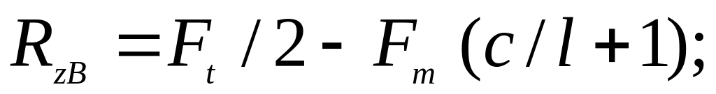 Реакции от сил Ft и Fm , действующих в горизонтальной плоскости