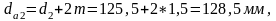 Диаметр окружности вершин: Шестерни da1 Колеса da2 |