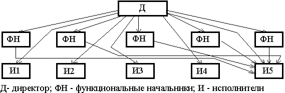 Иногда такую систему называют штабной, так как функциональные руководители соответствующего уровня составляют штаб линейного руководителя (на рис. 3.7 функциональные начальники составляют штаб директора).