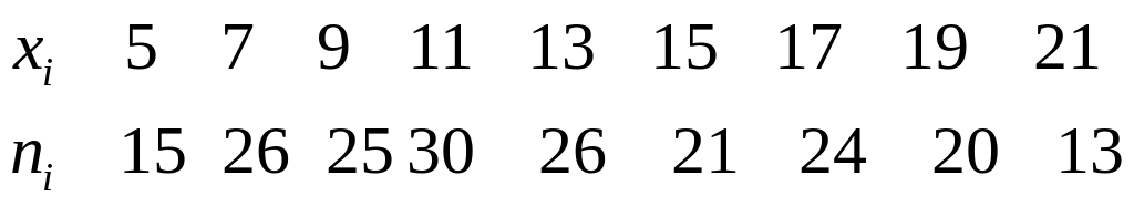 Пример 2. Пользуясь критерием согласия Пирсона, определить не противоречат ли опытным данным гипотеза о том, что с.в. , имеющая статистическое распределение