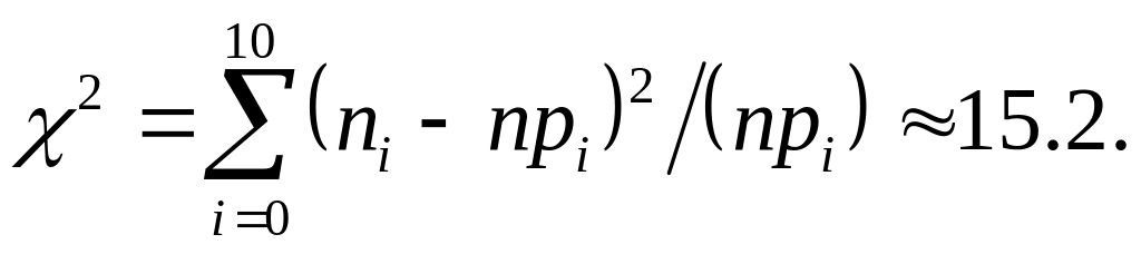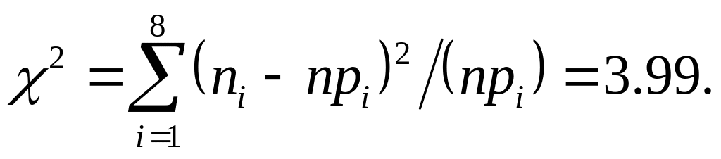 Распределение дает возможность оценить расхождение между гипотетическим распределением и статистическим. Если вероятность очень мала (не превосходит выбранного нами значения «уровня значимости» , такого, что событие с вероятностью считается уже практически невозможным), это значит, что опытные данные противоречат гипотезе , состоящей в том, что с.в. имеет распределение (2): эту гипотезу надо отбросить. Если же вероятность не мала, можно признать расхождения между теоретическим и гипотетическим распределениями несущественными и отнести их за счет случайных причин. Гипотезу можно считать правдоподобной, или, по крайней мере, не противоречащей опытным данным.