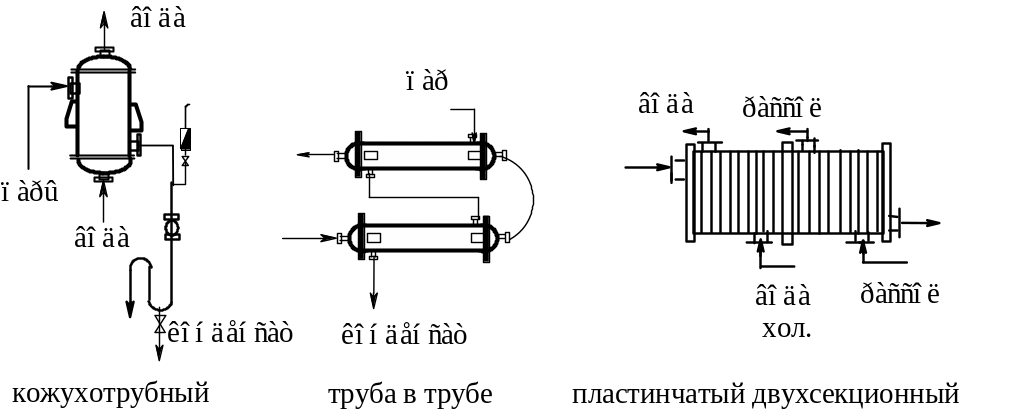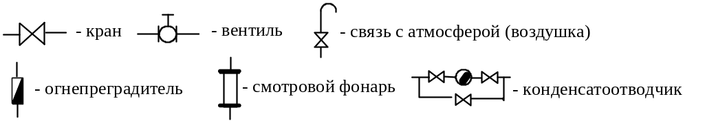 Однако информативность таких схем весьма ограничена. Поэтому в данном разделе приводятся условные обозначения оборудования, общепринятые на предприятиях химической промышленности, и примеры их использования при составлении отдельных фрагментов технологических схем.