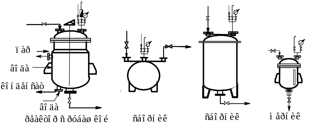 Рис. 1.4. Емкостная аппаратура, реакторы с рубашкой, сборники, мерники