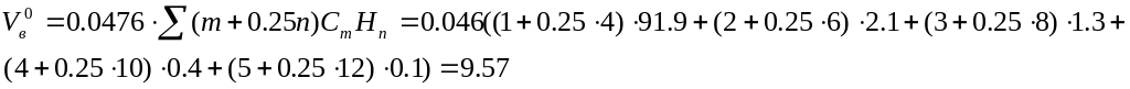 2.2 Определение низшей теплоты сгорания, теоретических объемов воздуха и